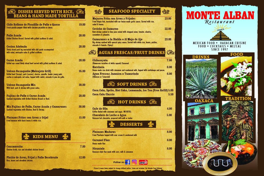 Guests can enjoy the casual yet classy atmosphere, whether dining in or taking advantage of their delivery and takeout services. With outdoor seating, a full bar, and special happy hour offerings, Monte Alban is perfect for families and groups alike, making every meal a memorable experience.